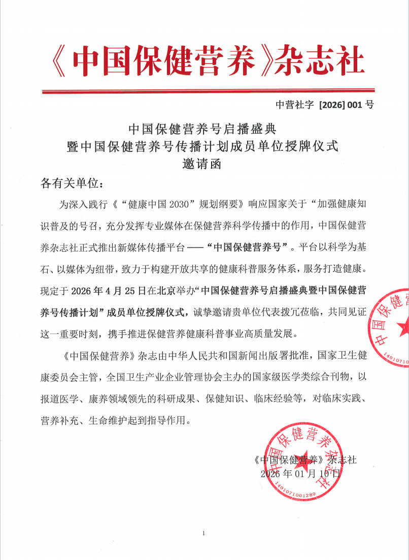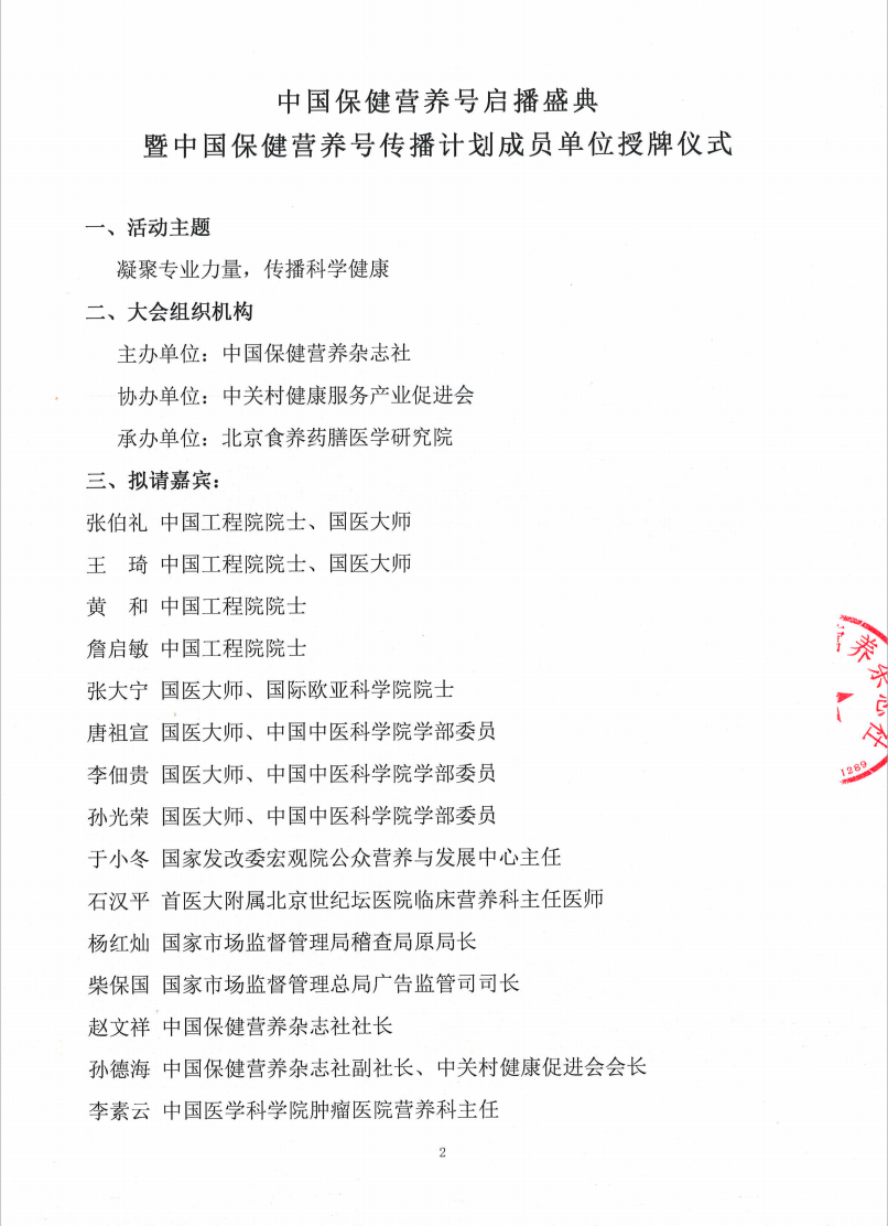 中国保健营养号启播盛典暨中国保健营养号传播计划成员单位授牌仪式邀请函