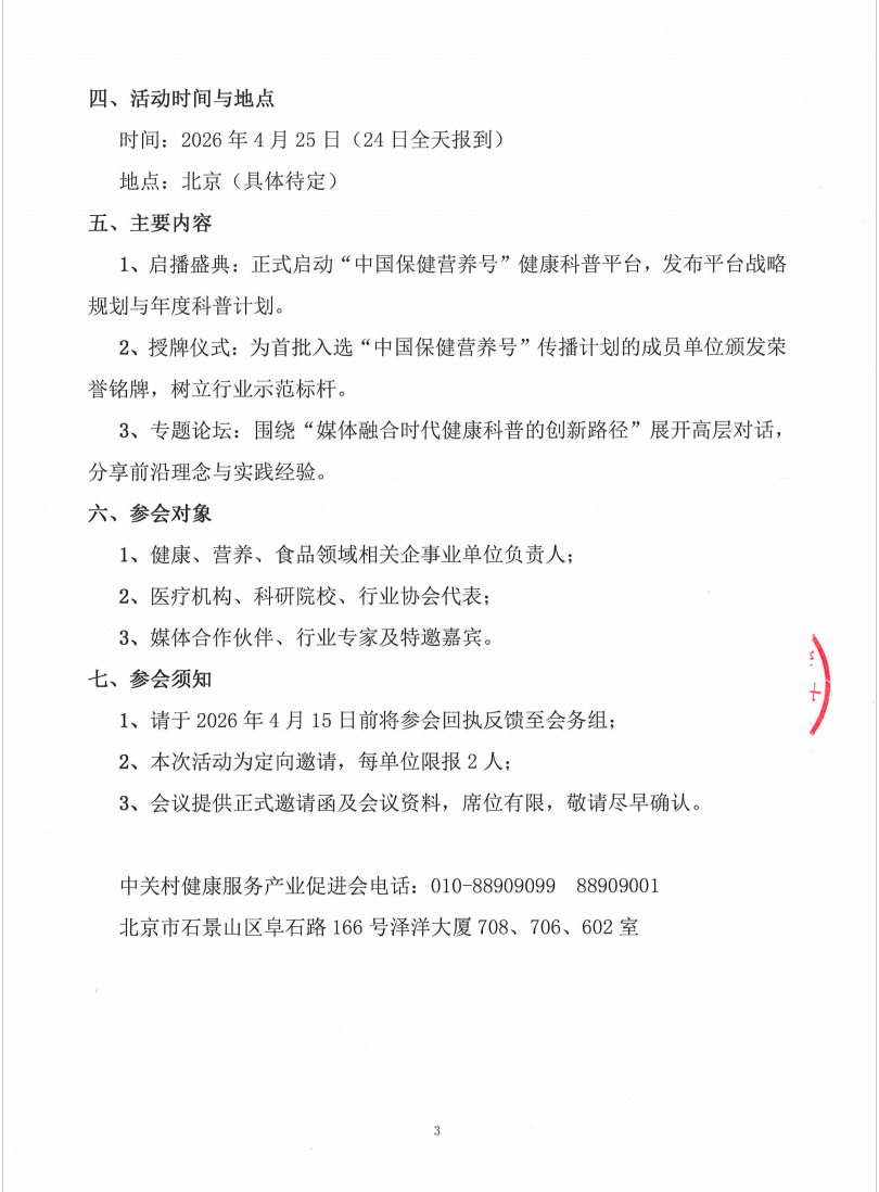 中国保健营养号启播盛典暨中国保健营养号传播计划成员单位授牌仪式邀请函